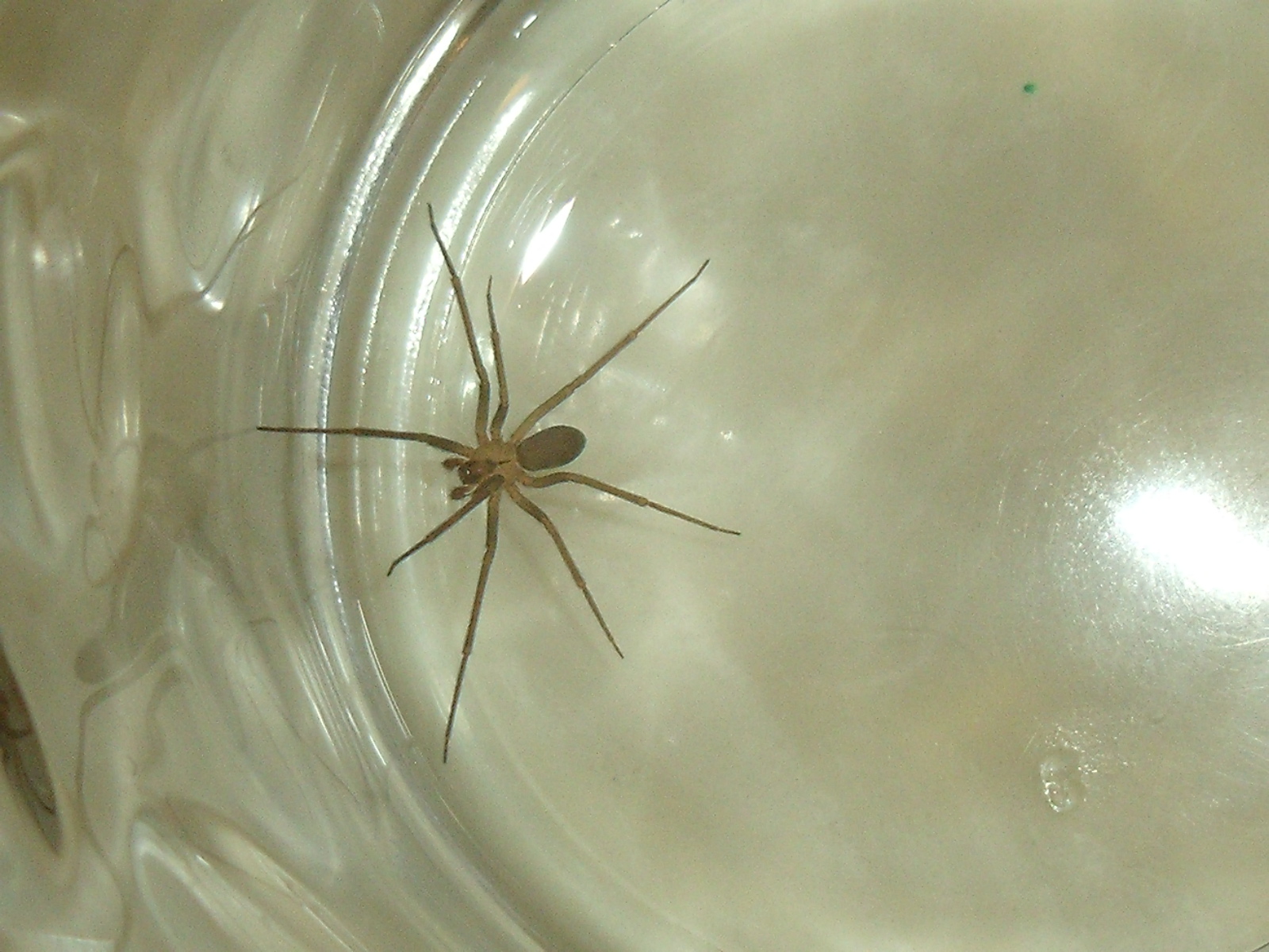 The mystery spider in a drinking glass later identified as the dreaded Brown Recluse